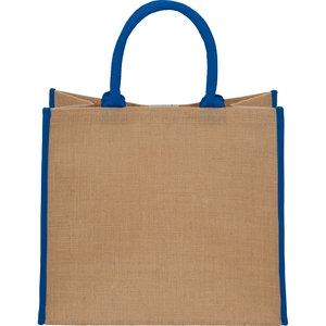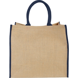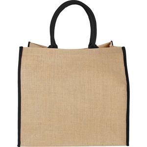 The Large Jute Tote has an open main compartment with a hook and loop closure and double 17 inch handles. Disclaimer: Minimum of 32pt. font size. Bold artwork only. No fine graphics or text.