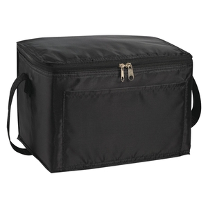 The Spectrum Budget 6-Can Lunch Cooler has PEVA insulation, a zippered main compartment, an open front pocket and 21" handle.